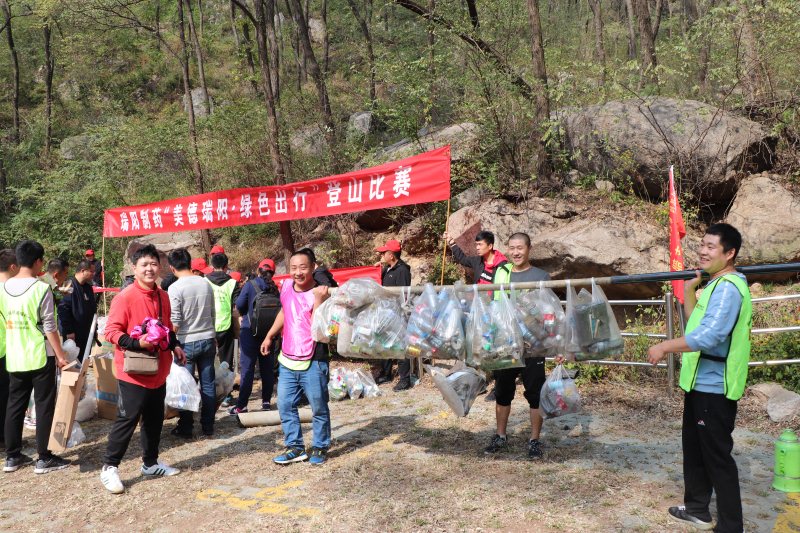 經過稱重,本次登山比賽共有383.8kg垃圾被瑞陽人從魯山各個角落匯集到山腰停車場?!笆皰黄?,成就一方美麗”,是本次登山活動全體瑞陽人對美麗魯山的美好祝愿。