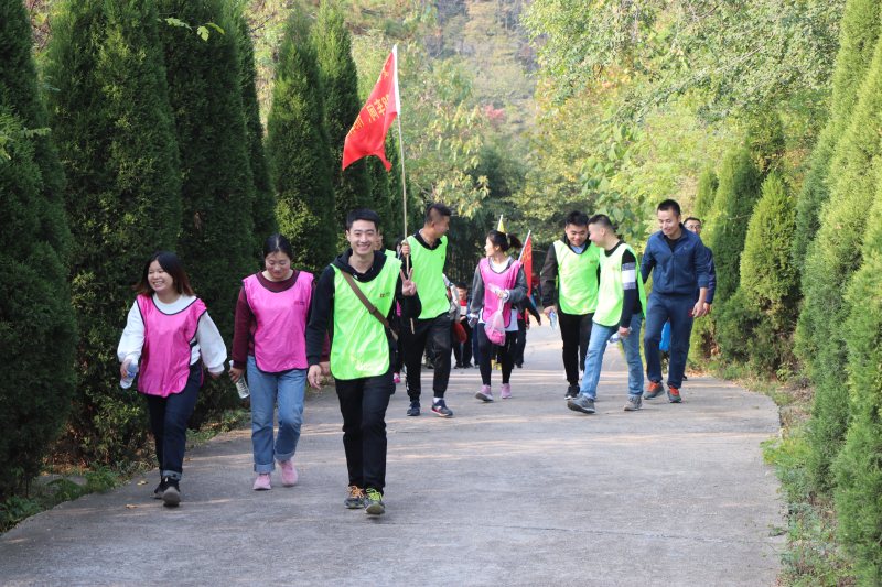 隨著登山比賽的開始口令,登山比賽正式拉開帷幕。隊員們爭先恐后、你追我趕,本著“一個都不能少”團結、互助的團隊協作精神,向著山頂目的地共同奮進。同隊隊友你拉我拽、互相鼓勵的情景在山道上形成了除藍天綠樹之外另一道美麗的風景。